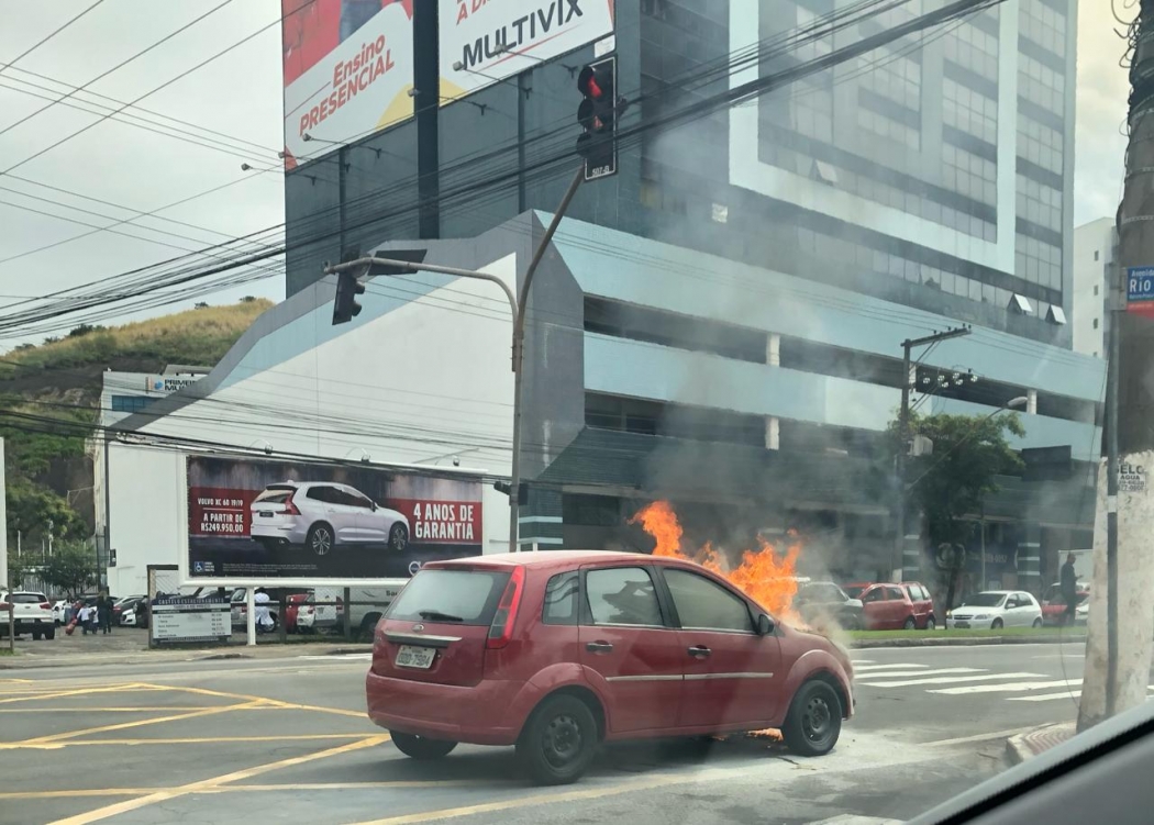 Um veículo de cor vermelha pegou fogo no início da tarde desta segunda-feira (29), por volta das 12h50, na Avenida Nossa Senhora da Penha, no bairro Santa Lúcia, em Vitória. De acordo com o Corpo de Bombeiros, a situação já foi controlada. Além disso, a seguradora chegou a remover o carro para o pátio da empresa.>