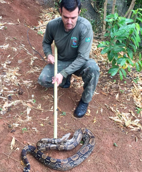 Já no bairro Joana D'Arc, os agentes da Semmam resgataram uma cobra da espécie jiboia de quase dois metros no quintal de uma residência.>