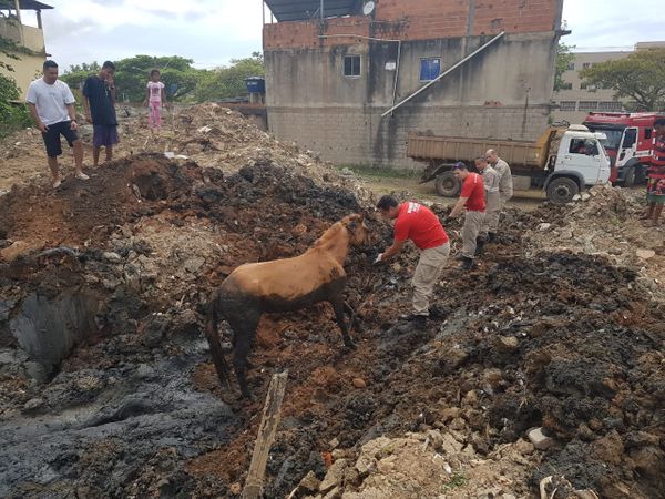 "Avisaram que tinha um animal aqui, um cavalo preso na lama, que é retirada do valão da região de Cobilândia. Já havia três dias que o cavalo estava preso aí, segundo moradores. Viemos até aqui para fazer o resgate do animal nessa lama. Foi bastante difícil de pisar aqui, de subir e correr risco de ficar preso também junto animal", afirmou.>