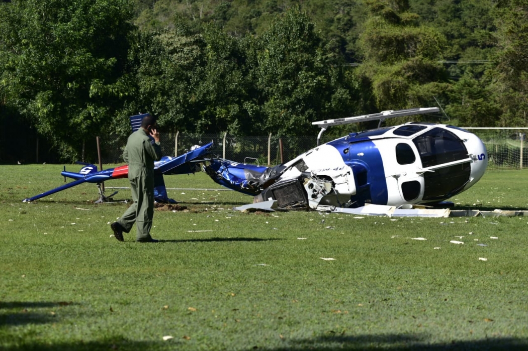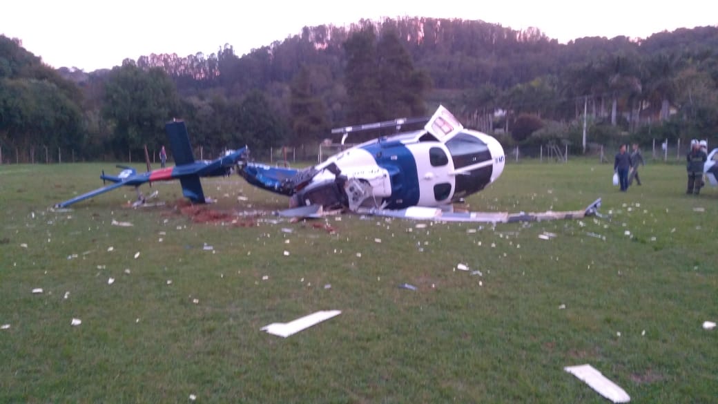 O helicóptero caiu depois de bater em uma trave móvel que estava posicionada no meio do gramado de um campo de futebol da fazenda. De acordo com testemunhas, a trave móvel é colocada no meio do campo porque o local é usado para a prática de Educação Física de uma escola na região. O local foi utilizado pelas crianças minutos antes do acidente.>