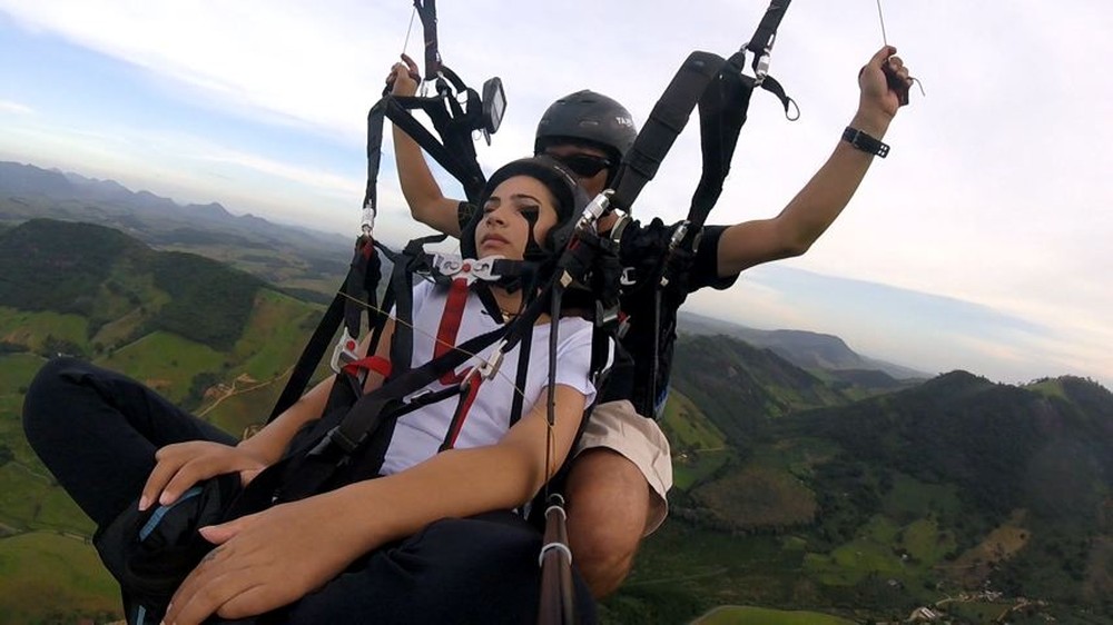 Laís foi convidada a visitar um lugar único: as montanhas de Alfredo Chaves, a 80 quilômetros de Vitória, capital do Espírito Santo. O local é um paraíso para os praticantes de voo livre. E o convite veio acompanhado de um desafio: um voo de parapente.>