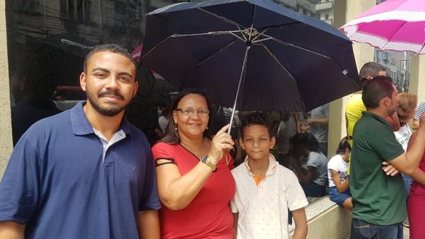 Iracema Nunes, atendente, veio com o marido e os dois filhos. Eles foram um dos primeiros a chegar na fila, quase duas horas antes da abertura.>