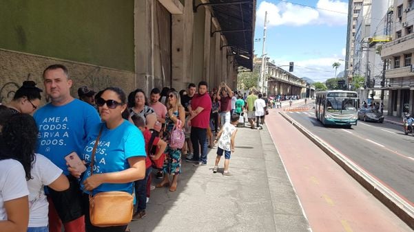 Elaine Santana trouxe 30 alunos do Sul do Estado de uma rede de faculdades particular. "Viemos de Marataízes, Itaipava e Anchieta. Achei maravilhosa essa ideia e a gente precisa apoiar e vir. Essa fila não vai desanimar a gente não. Enquanto a gente não chegar lá, a gente não fica satisfeito", brinca Elaine.>