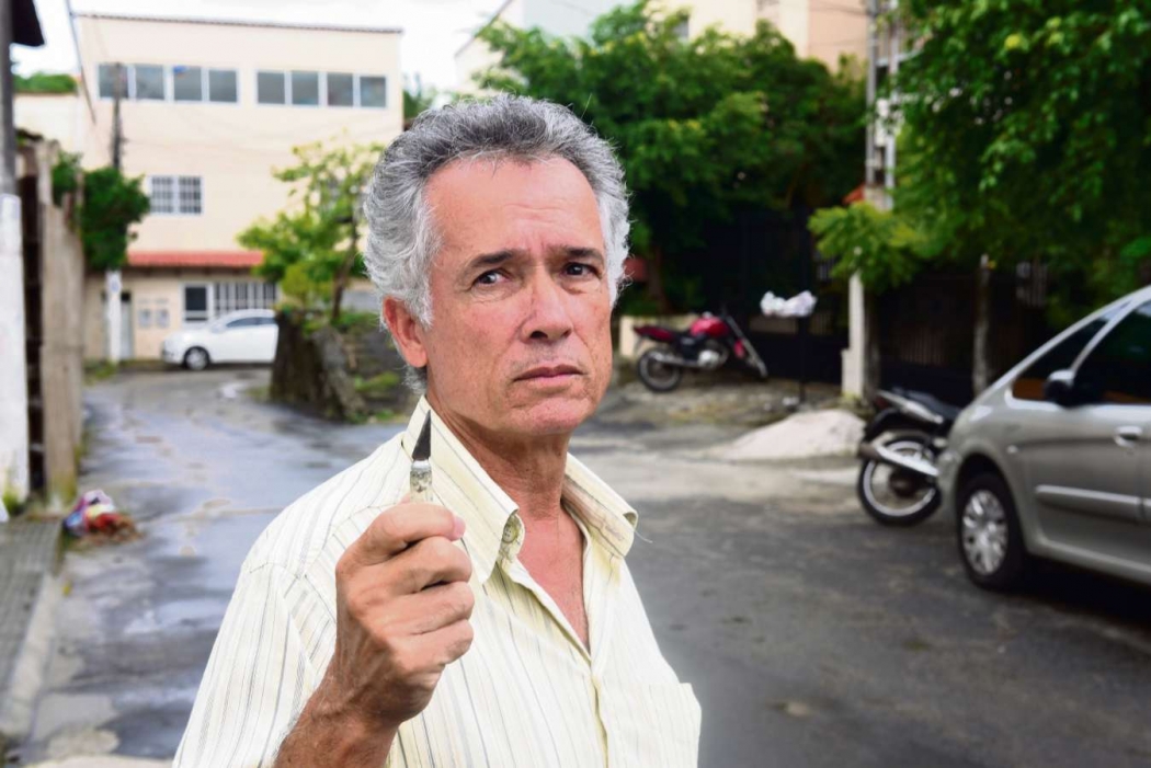 O trauma após ter sido atacado por um pitbull foi tão grande que o microempresário Eduardo França do Nascimento, de 64 anos, não sai de casa desarmado. Com a ponta de estilete, ele confeccionou uma arma para revidar o ataque caso algum cão avance para cima dele.>