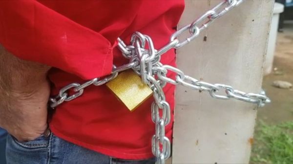 Depois de dois meses sem ter remédio para tratar a própria leucemia, o aposentado Cláudio Gomes dos Santos, de 64 anos, resolveu se acorrentar a uma pilastra do Centro Regional de Especialidade de Cariacica. A ação, feita em protesto, aconteceu nesta quarta-feira (4), com o intuito de chamar a atenção das autoridades. >