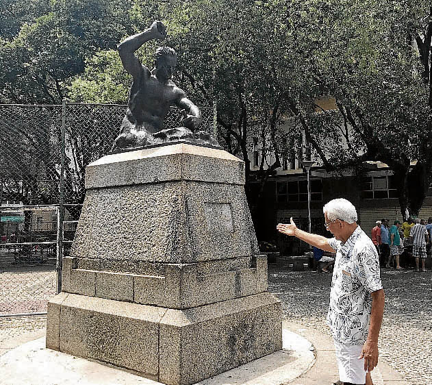 As pessoas quando passam para ver uma estátua querem saber que é o que significa, mas assim não tem como, disse a moradora Amélia da Penha Nunes, de 71 anos, que passava em frente à escultura do trabalhador.>