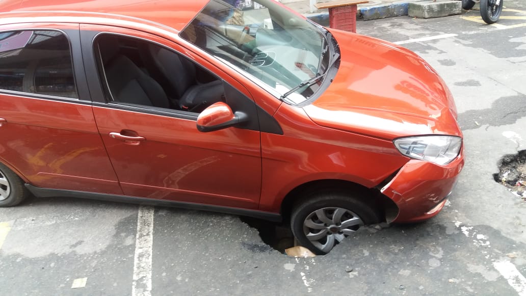 Um motorista de aplicativo teve o carro danificado após cair em um buraco em uma vaga de estacionamento rotativo na Rua Francisco Alves, em Campo Grande, Cariacica, por volta de 8h30 desta quarta-feira (29). Segundo Manasses de Almeida, o prejuízo com o carro dele, Um Fiat Grand Siena, gira em torno de R$ 5 mil. >