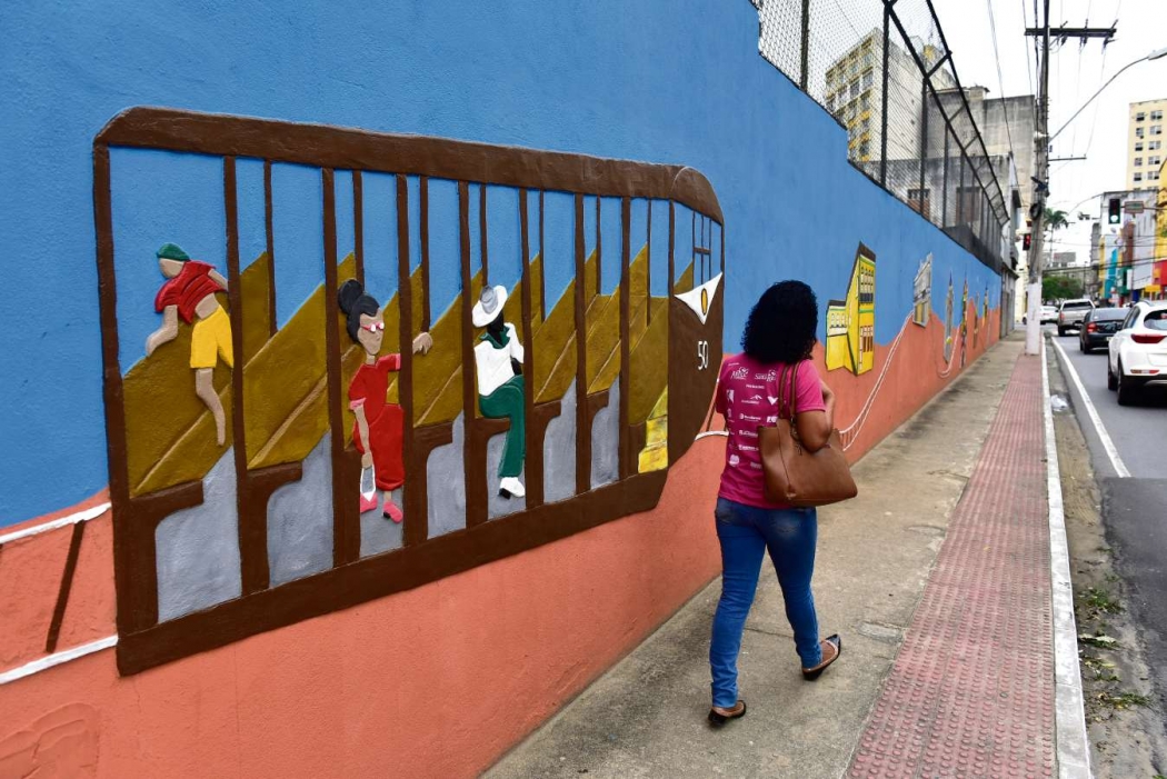 As intervenções artísticas por muros e fachadas de imóveis em Vitória estão se tornando cada dia mais presentes. No Centro, por exemplo, a restauração do Bonde da História, na Rua Barão de Monjardim (lateral da Fafi), dá mais cor ao mural em relevo que retrata prédios históricos, e faz reviver a sensação de percorrer as ruas da Capital de bondinho. >