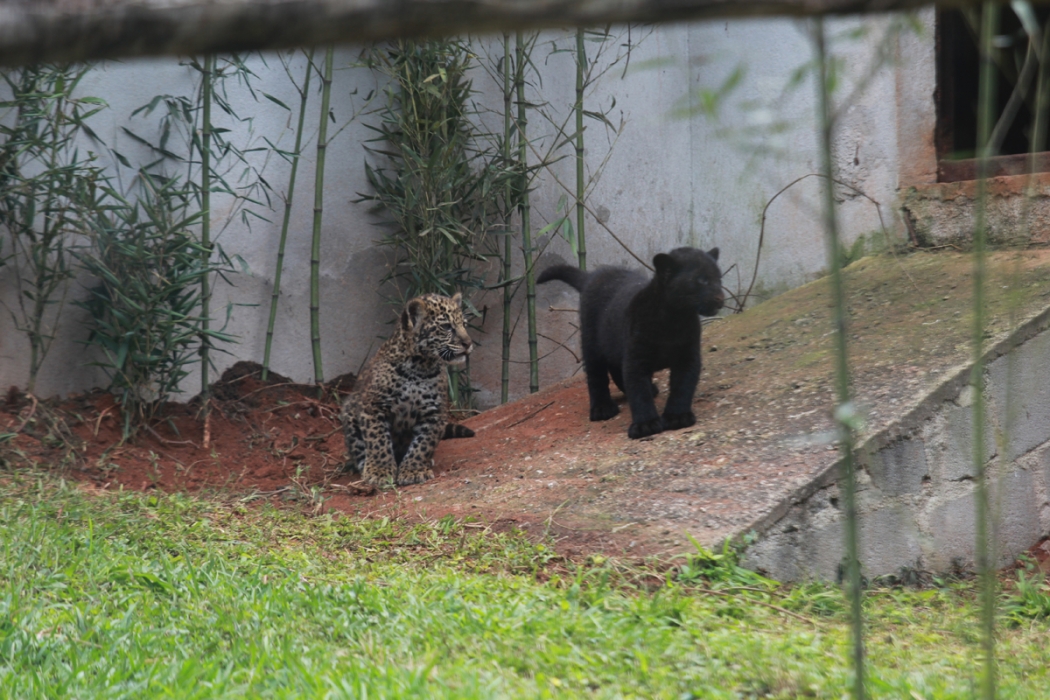 O primeiro a nascer foi o pintado, e cerca de 20 minutos depois nasceu o preto. A gestação das onças dura de 90 a 110 dias. Os irmãos já passaram por avaliações de veterinários e estão adaptados ao zoológico.>