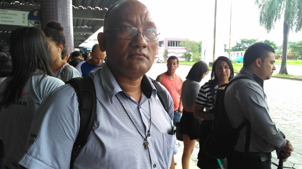 O consultor de vendas Luiz Carlos Souza Pazzini, de 56 anos, pega o ônibus da linha 540, que segue para o Terminal de Carapina. Ele relatou que durante os dias normais o ônibus estava saindo com intervalo de sete minutos do Terminal de Campo Grande, mas nesta segunda-feira (03) estava demorando até uma hora para passar. Pegar o ônibus peguei rápido, mas pra sair daqui para o terminal está difícil. O fiscal deu prazo de uma hora para cada fila. Ele disse que de 14 ônibus está rodando quatro, relatou.>