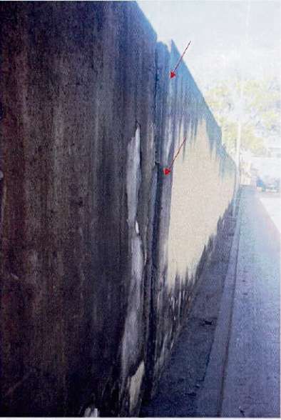 - Muro fora de prumo e com estrutura em estado avançado de deterioração>