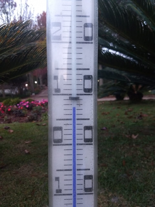O termômetro de um hotel localizado em Vargem Alta, na Região Serrana do Estado, registrou 7°C na manhã desta quinta-feira (7). O gerente do hotel, Paulo Uliana, fotografou a medição e também como o frio deixou a manhã esbranquiçada. >