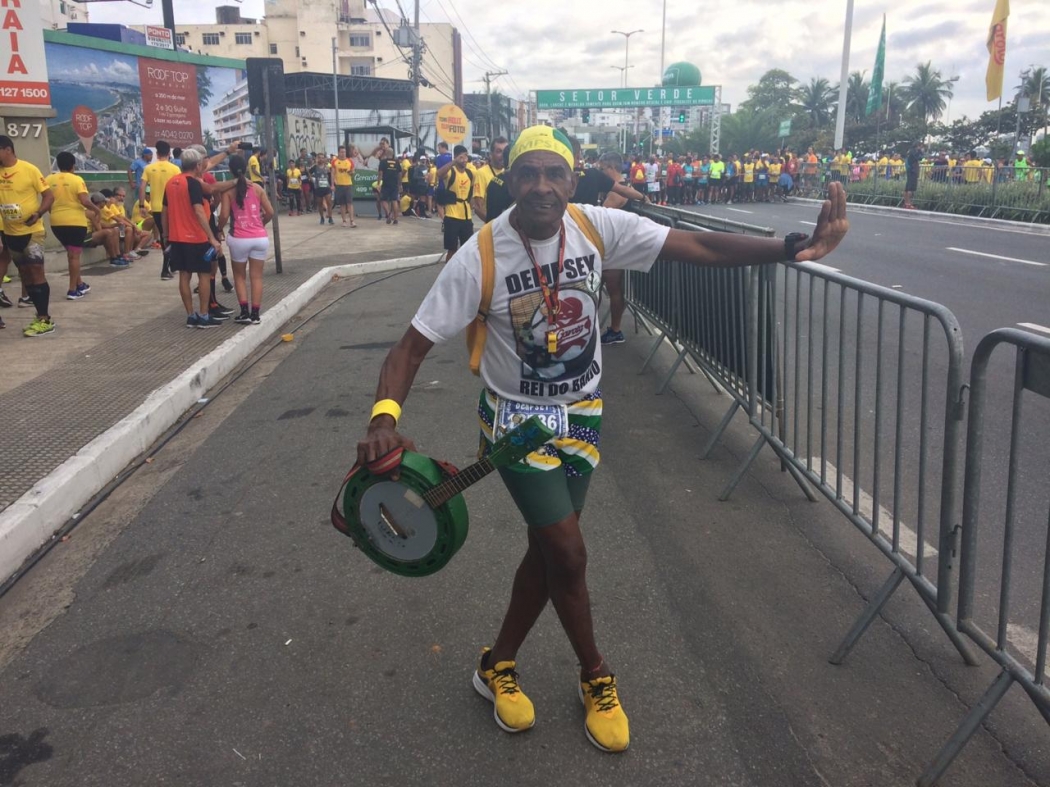 Eu sou o único do Brasil que corre até meia maratona tocando banjo. Meu banjo não veio, que é o branco, não veio hoje, mas eu já corri aqui umas 10 vezes com o banjo. Porque o banjo faz parte do meu hobby, e me incentiva.>