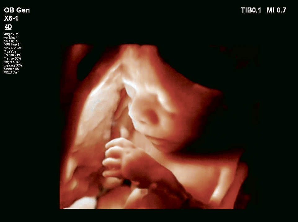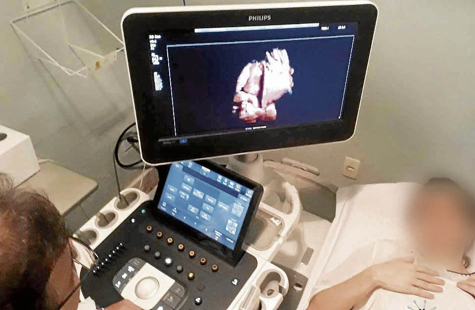 Mais do que uma imagem de ultrassom comum, a máquina nova permite visualizar o feto em três dimensões em movimento. O aparelho tem uma definição muito refinada e consegue produzir imagens em três dimensões, visualizando lesões de um tamanho que nenhum outro equipamento pode fazer, explicou o médico.>