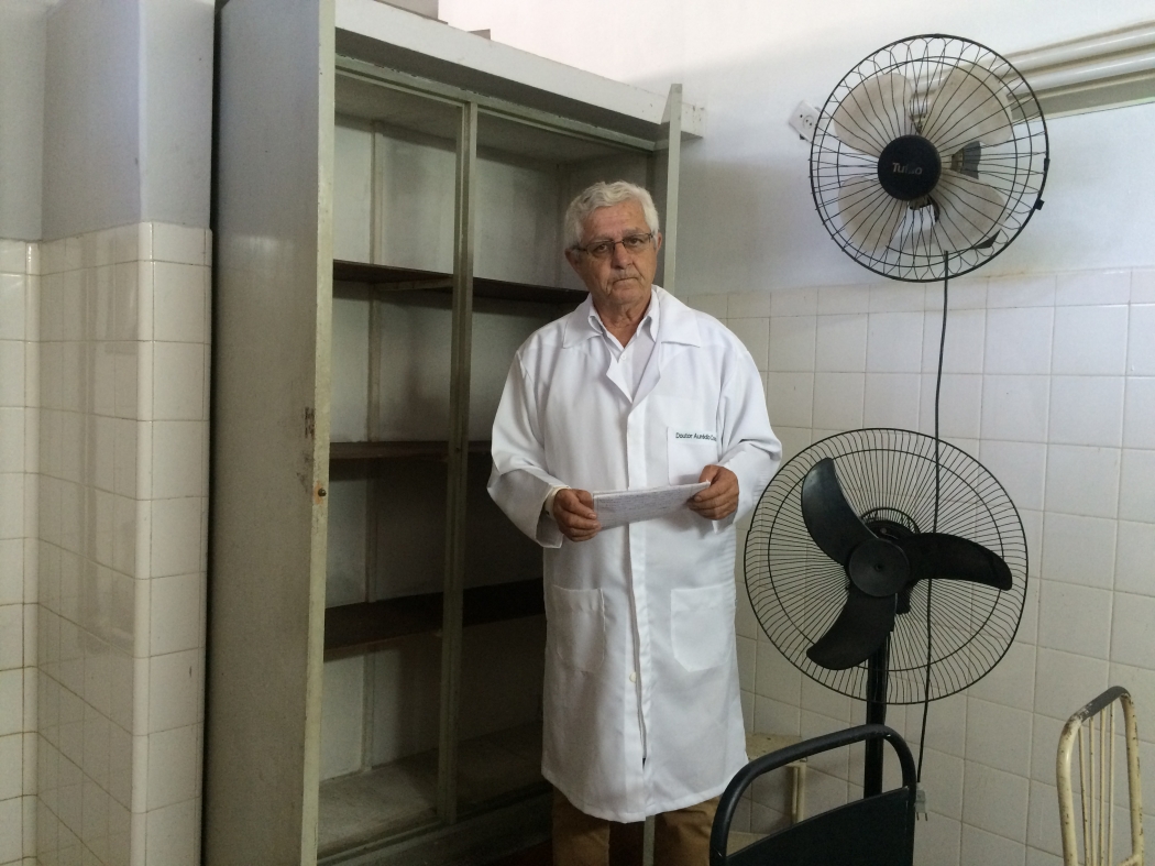 Macas, aparelhos de aferir pressão, termômetro, palito para examinar a garganta, estetoscópio e até água. Dessa lista de itens básicos, só o palito está disponível um ano após o surto do médico Aurédio José Couto, de 72 anos, na unidade de saúde de Jardim América, em Cariacica. O próprio profissional resume: Aqui é lugar de pegar doenças, e não de tirar doenças.>