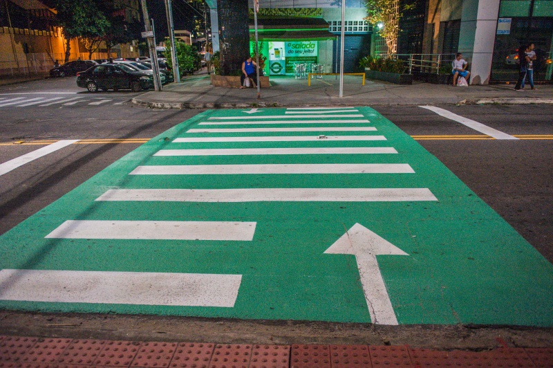 Na Avenida Rio Branco, na Praia do Canto, a instalação da faixa será perto de uma academia. As faixas são verdes para chamar a atenção dos motoristas para a novidade e servem de alerta durante o dia e, principalmente à noite, segundo o secretário municipal de transportes, trânsito e infraestrutura urbana (Setran), Tyago Hoffmann. Veja como funciona abaixo:>