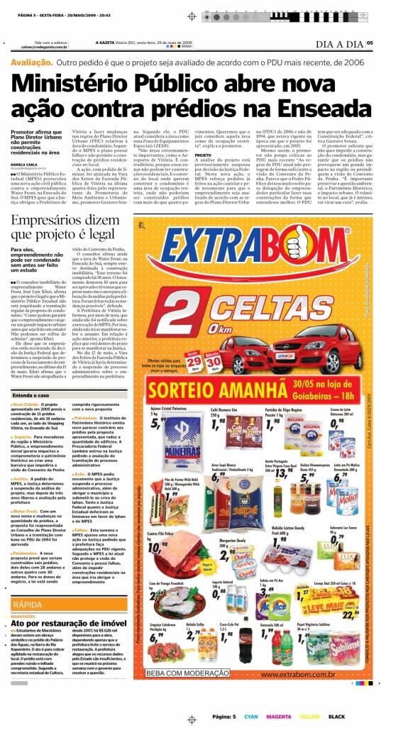 Em abril de 2009, o MPES entrou com a primeira ação pedindo que a Justiça determinasse ao município a suspensão da tramitação do processo e cumprisse outras obrigações restritivas ao empreendimento.>