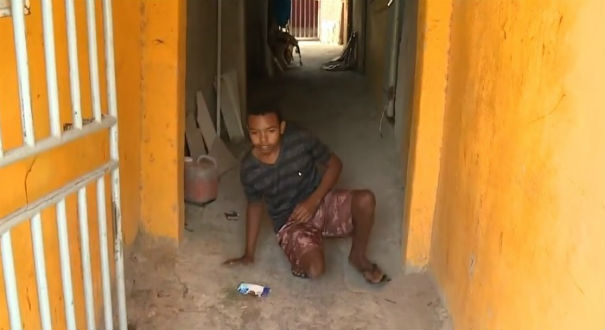 A mãe dele, a dona de casa Ednalva dos Santos, conta que por conta da queimadura a pele da perna dele ficou deformada e, por isso, o Vanderson não consegue mais andar. Eu vejo todo mundo andando e ele só de mão no chão, rastejando. Eu fico com o coração na mão. Ele não anda e está aí até hoje assim, precisando de ajuda, comenta emocionada a situação do filho.>