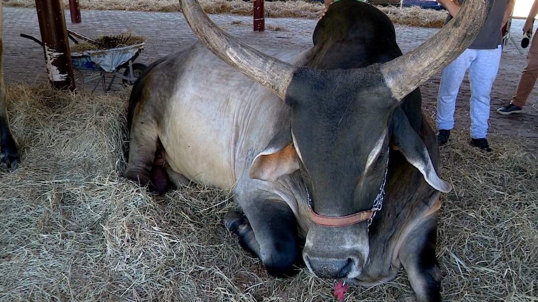 Entre os animais expostos na área de pecuária leiteira, um em especial também chama a atenção pelo tamanho: um touro da raça guzerá, que pesa mais de 1,3 tonelada. Campeão em uma competição em MG, ele é de uma fazenda de Baixo Guandu, também no Noroeste do Estado. Ele impressiona pelo tamanho e pela docilidade, comentou a produtora rural Néia Abelt.>