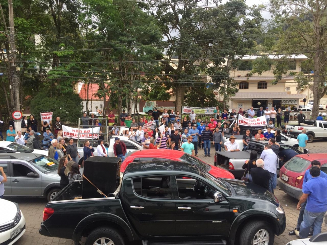 O impasse sobre o tombamento do sítio histórico de Santa Teresa, no Noroeste do Estado, gerou um protesto durante a tarde desta quarta-feira (25). Organizada por quem é contra a intervenção estatal, a manifestação começou às 14h, percorreu diversos bairros da cidade e terminou em frente à prefeitura, por volta das 16h30.>