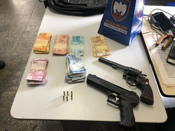 Após o trabalho de isolamento da área, os suspeitos acabaram se rendendo. Com eles, foram apreendidos um revólver de calibre 22 com seis munições e três aparelhos celulares danificados pelos próprios criminosos, quando os militares chegaram ao local. Também foi localizada uma mochila contendo todo o dinheiro que estava sendo roubado por eles, além de uma pistola falsa e um HD.>
