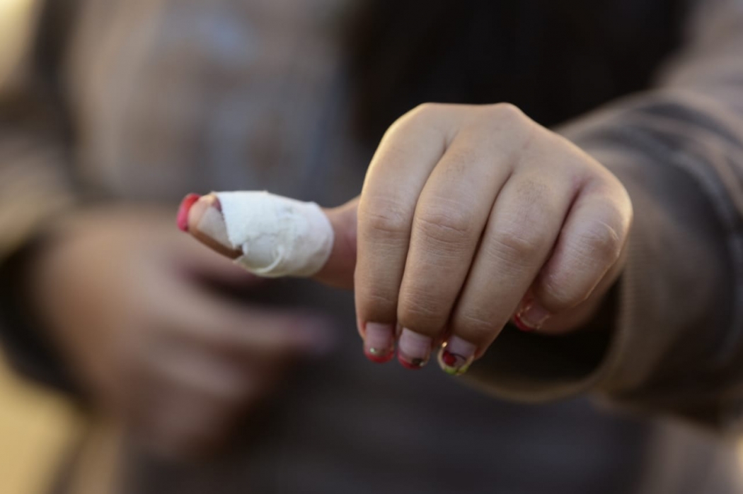 A jovem de 20 anos se recusou a obedecer a ordem do padrasto, mas ele insistiu e aproximou o rostinho da bebê na grade. Nesse momento, a irmã mais velha se aproximou, tentou pegar a faca do ajudante de pedreiro, mas ele puxou a arma e ela acabou ferida.>