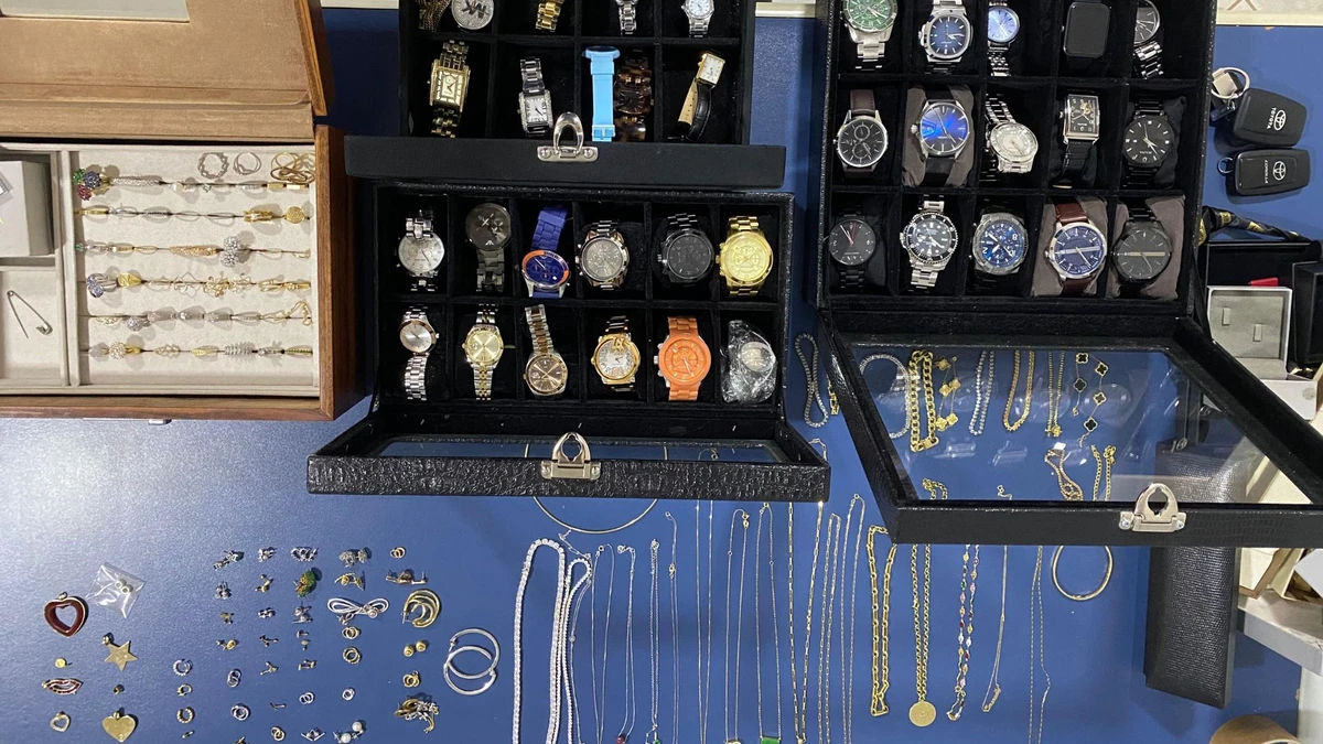 Além dos desvios para contas bancárias pessoais, a suspeita também realizava pagamentos de compras pessoais com recursos da empresa, como a aquisição de joias e a quitação de financiamento de um veículo. Na residência do casal, localizada no bairro Jardim América, no município, foram apreendidos um automóvel Toyota Corolla 2022, um aparelho iPhone 15 Pro Max, um celular Xiaomi 11 Lite e um notebook Asus, além de 37 relógios masculinos e femininos, 47 anéis, 35 pares de brincos, 12 pulseiras, 19 colares, nove pingentes e duas alianças.>