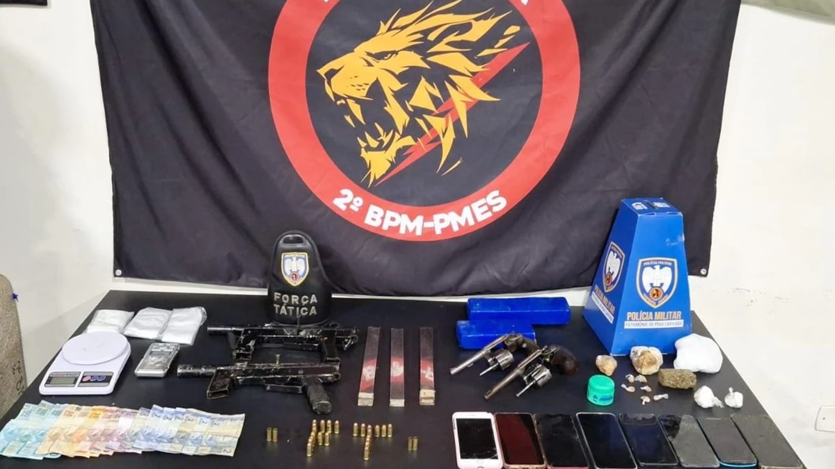 A Polícia Civil informou que os dois homens presos foram autuados em flagrante por tráfico de drogas, associação para o tráfico e posse e porte ilegal de arma de fogo, sendo encaminhados ao Centro de Detenção Provisória (CDP). Os adolescentes foram autuados por atos infracionais análogos aos mesmos crimes e levados à Unidade de Internação Provisória (Unip), do Iases.>