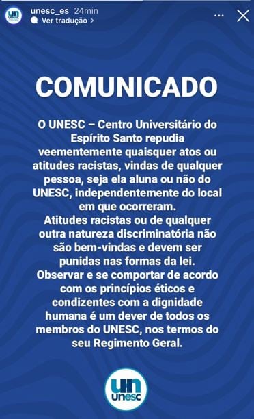 As três jovens investigadas pela Polícia Civil do Espírito Santo por suspeita de racismo após fazerem comentários preconceituosos durante uma brincadeira em um vídeo que circula nas redes sociais, prestaram depoimento na Delegacia Regional de Linhares, no Norte do Espírito Santo. Uma adolescente de 17 anos e uma jovem de 19 foram ouvidas na tarde de segunda-feira (8), e outra suspeita, também de 17 anos, foi ouvida na manhã desta terça-feira (9).>