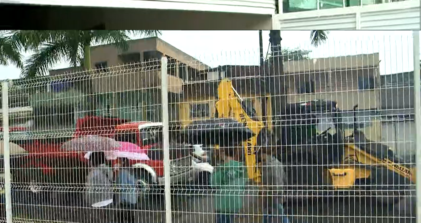 Em nota, a Polícia Militar afirmou que uma equipe foi ao local do crime e obteve a informação de que dois indivíduos armados entraram no escritório, anunciando o assalto, e que uma vítima foi trancada no banheiro.>