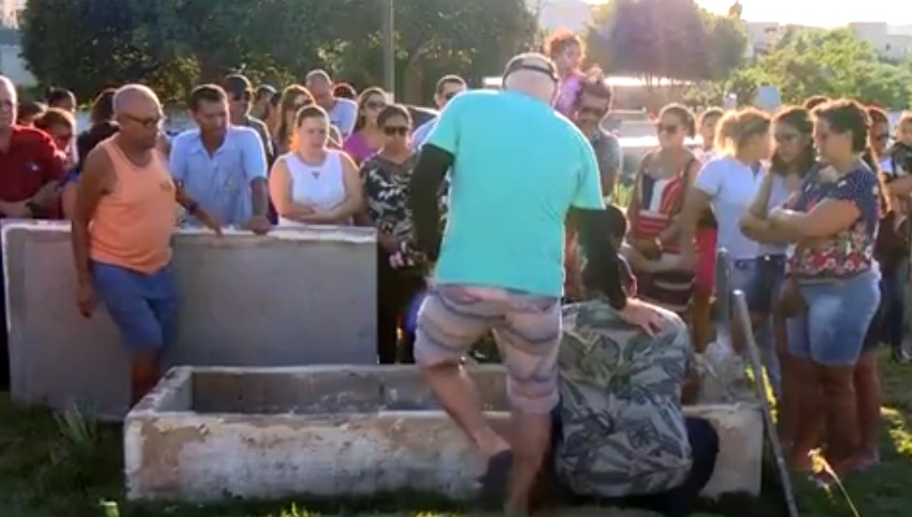 Acusado de ter assassinado a mulher, Paulo Sérgio de Oliveira esteve presente no enterro da esposa Regiane da Silva Pereira, realizado no último dia 7 de maio, em um cemitério de São Mateus, no Norte do Espírito SAnto. Acompanhado de um amigo, ele chegou a se abaixar ao lado do túmulo. Um dia antes, o corpo da professora havia sido encontrado às margens da BR 101.>