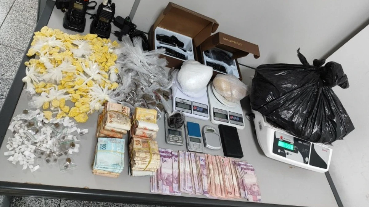 Uma grande quantidade de drogas e mais de R$ 32 mil em dinheiro foram apreendidos dentro de uma casa, nesta quinta-feira (26), durante uma operação da Polícia Militar no bairro Santos Reis, em Vitória. A ação contou com o apoio do Batalhão de Ações com Cães (BAC), que apontou uma residência onde estavam os entorpecentes. >