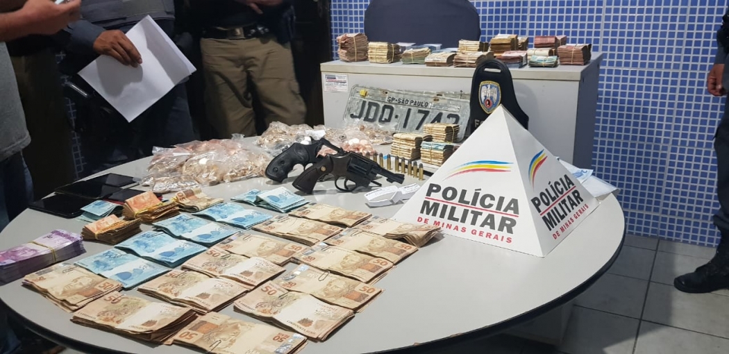 No carro ainda foram encontrados três celulares e as roupas usadas pelos criminosos nos dois assaltos. Os suspeitos foram questionados sobre o restante do dinheiro roubado e as armas usadas nos crimes. Um deles contou que tudo estava guardado em sua casa, em Goiabeiras (MG). Uma equipe foi deslocada ao local indicado, no bairro Boa Vista, e localizaram dois revólveres calibre 38 municiados. Em uma gaveta do guarda-roupas havia R$ 265 em moedas.>