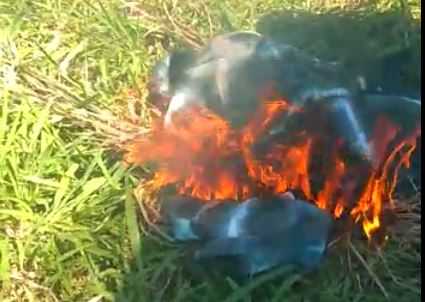 A Polícia Militar retirou na tarde deste sábado (15) uma bandeira preta hasteada em uma torre de comunicação no alto do Bairro da Penha, em Vitória. A bandeira seria uma homenagem a Caio Matheus Silva Santos, morto na última sexta-feira (14) durante uma operação da Polícia Civil no bairro do Bonfim, em Vitória. De acordo com os militares, a bandeira havia sido colocada por lá por ordem de criminosos ligados ao tráfico de drogas local. Após ser retirada da torre, a homenagem foi queimada.>