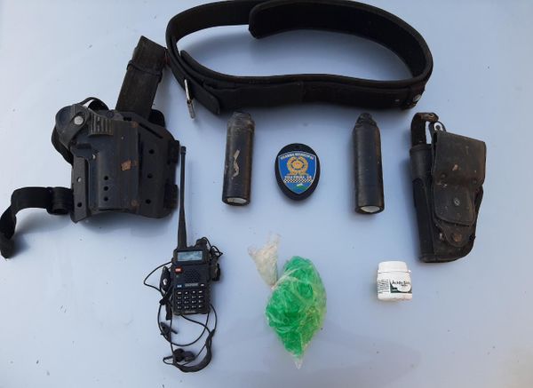 Durante a ação policial em Sagrada Família, foram apreendidos uma granada do tipo defensiva, de uso exclusivo do Exército brasileiro, 156 pinos de cocaína, um revólver calibre 38 carregado com seis munições intactas, além de radiocomunicador, três potes de ácido bórico e nove munições calibre 380 intactas. >