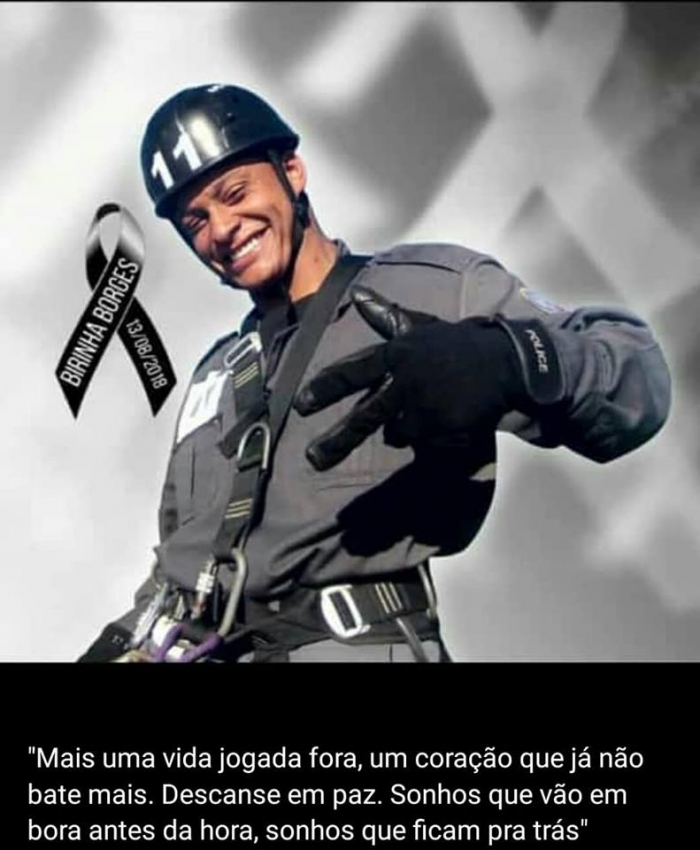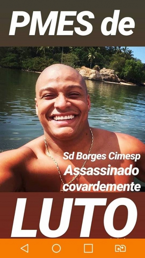 Borges era lotado no 4° Batalhão e tinha 10 anos de serviço. Ele faria 30 anos no próximo mês. Ele deixa uma filha de 2 anos, de outro relacionamento, e a esposa, de 29 anos, que está grávida.>