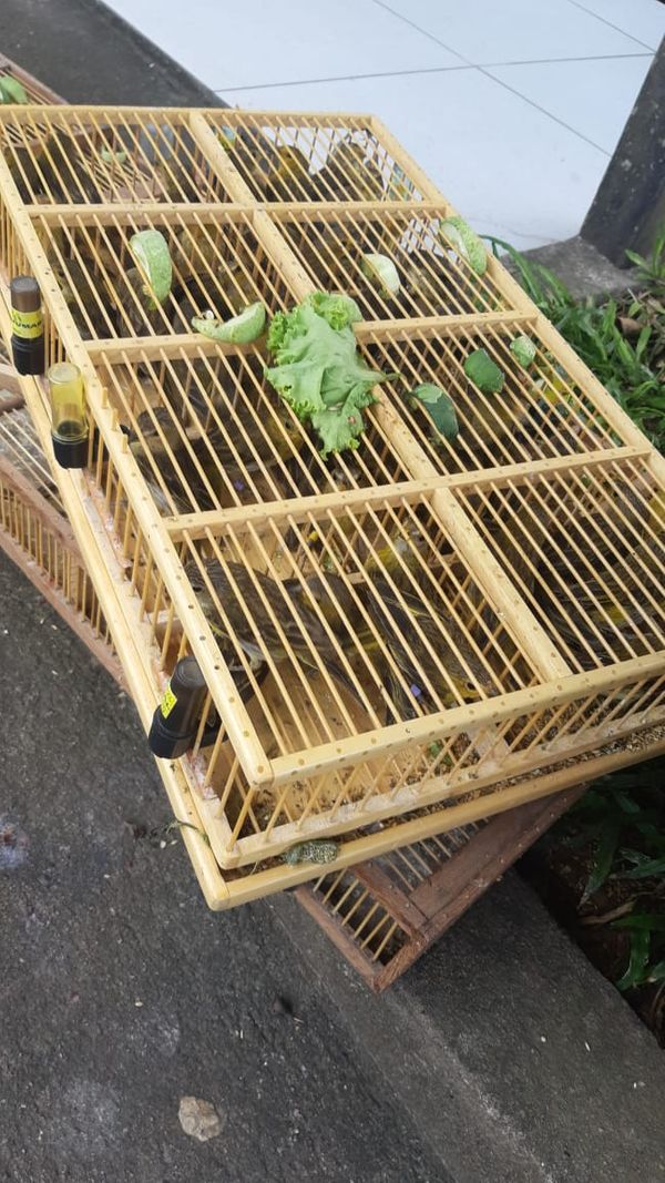 Ainda de acordo com informações dos agentes, o condutor do veículo teria informado à polícia que teria comprado as aves por cerca de R$ 10, em Belo Horizonte, Minas Gerais. Uma parte dos animais apreendidos seria destinada para venda na feira de Aribiri, em Vila Velha, e outra já estava encomendada por compradores por meio de rede social.>