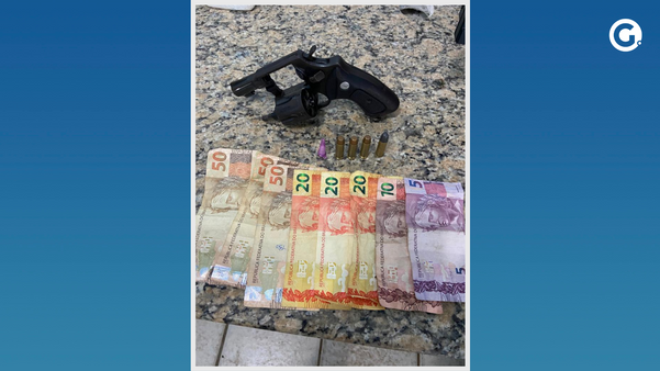 Com o homem detido foi apreendido uma arma calibre .38 com munição e uma bolsa contendo grande quantidade de dinheiro. A Polícia Militar não informou se o outro indivíduo foi localizado.>