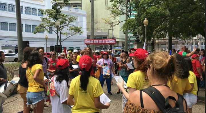 A manifestação a favor do petista reúne cerca de 300 pessoas em Vitória, segundo organizadores do evento, e 100 pessoas de acordo com a Guarda Municipal de Vitória. Por meio de três televisores espalhados pela Costa Pereira, eles acompanham o julgamento do ex-presidente.>