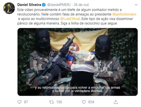 No vídeo, há três pessoas vestidas com roupas militares, uma delas segura o que parece ser uma arma. O narrador diz que seguirão na luta armada para defender quem são seus verdadeiros comandantes. Ele cita como "comandante" Lula e outros políticos de centro-esquerda como o ex-presidente do Equador, Rafael Correia, o presidente boliviano, Evo Morales, e o presidente eleito na Argentina, Alberto Fernández. Afirma ainda que estará "à disposição do povo argentino que disse 'não' a Mauricio Macri e a Jair Bolsonaro no Brasil". >
