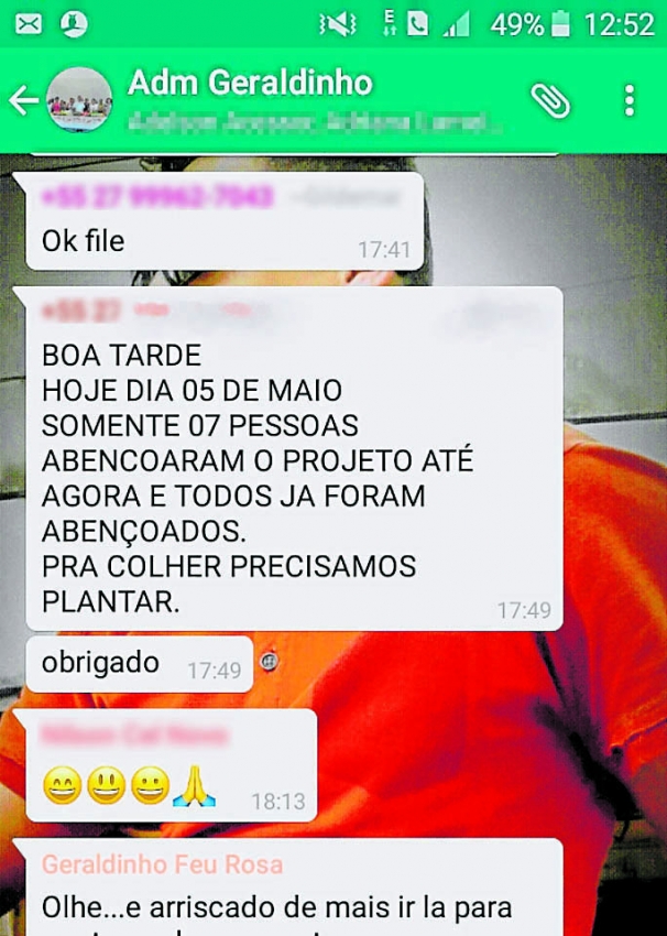 Em conversas em grupos de WhatsApp, por exemplo, um dos servidores refere-se ao repasse como dízimo.>