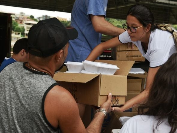 Moradores do município estão desde a noite da última sexta-feira (17) sem serviços essenciais como banco, supermercados, mercearias e farmácias. Somente uma padaria funciona na cidade, além dos postos de doação e a Paróquia Santo Antônio de Pádua, em que voluntários trabalham diariamente para que os desabrigados recebam café da manhã, almoço e janta. >