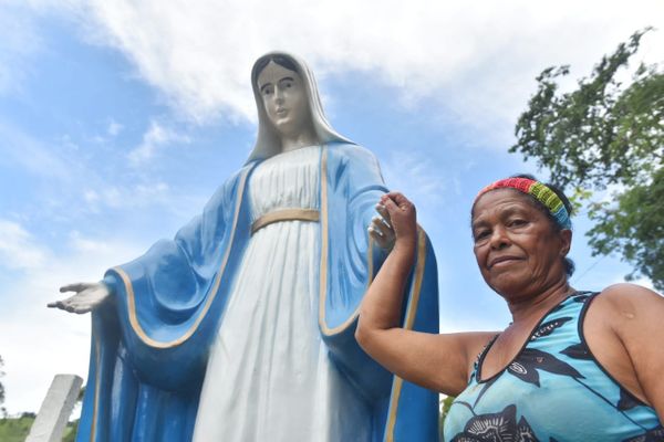 Devota de Nossa Senhora das Graças, Sebastiana conta que lava a imagem quase todos os dias. "Tenho muita fé e sempre converso com ela e ela me atende. Para mim ela é viva. Fiquei abobada quando a vi, não tinha nem um barrinho no pé dela. Eu a tinha limpado na quinta (23) e na sexta (24) a chuva destruiu tudo. Toda a grama foi alagada, tudo tomado por barro, menos a santa", relata.>