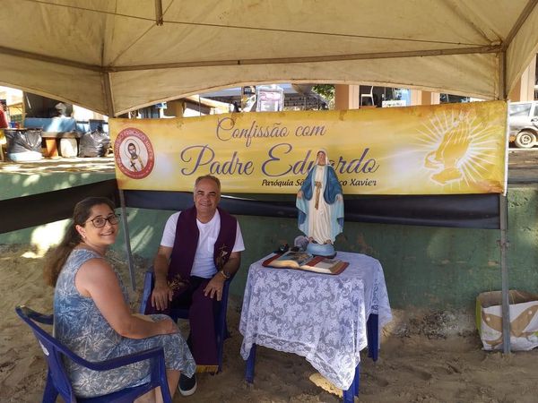 Fizemos o terço às 7h da manhã e foi lindo, muitas pessoas vieram. Atendi as confissões depois, de 9h até às 13h. Às sextas, fico na Praia da Costa Azul, no mesmo horário, conta o padre, responsável pela Paróquia de São Francisco Xavier, em Iriri.>
