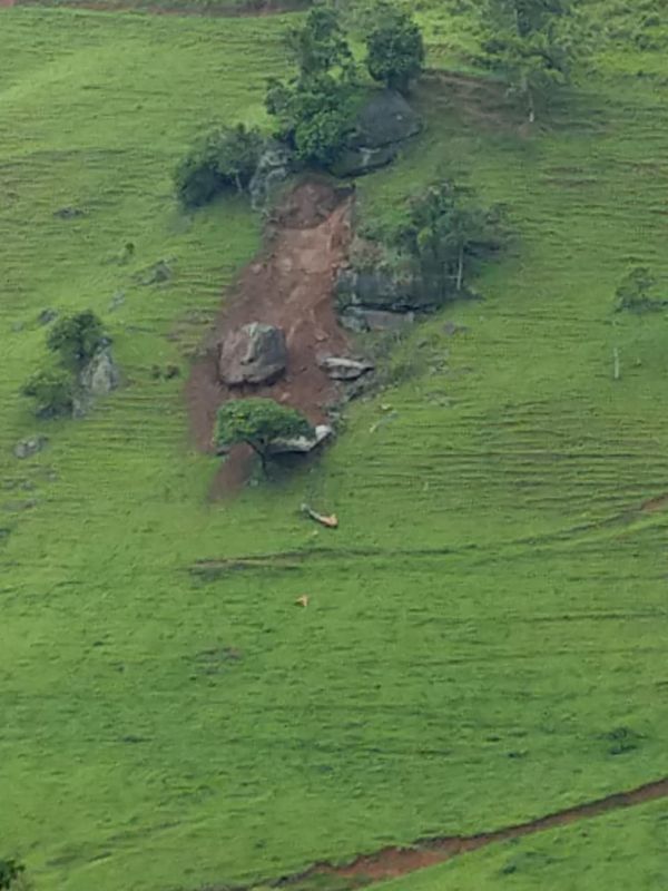 Um pedaço de uma pedra se desprendeu do alto de um morro e caiu na manhã deste sábado (22) na comunidade de Santo Antônio em Vargem Alta, Região Serrana do Estado. De acordo com a Defesa Civil, a pedra atingiu a varanda e um cômodo de uma casa. >
