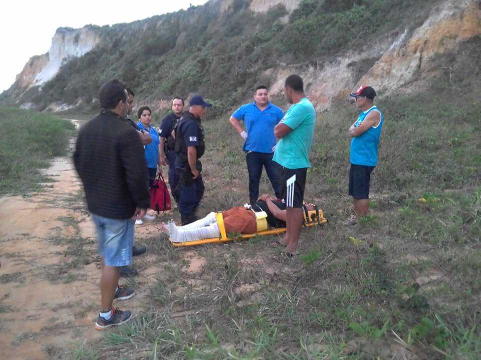 Um piloto de parapente, de 57 anos, ficou ferido após um salto nas Falésias de Marataízes, no Litoral Sul do Estado. O acidente aconteceu na tarde deste domingo (19). A vítima caiu de uma altura de mais de 30 metros e sofreu fraturas.>
