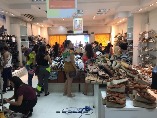 Nesta quarta-feira (05), clientes fizeram fila para entrar em uma loja de calçados, no Centro da cidade, que abriu as portas com vários produtos lavados e recuperados. Os descontos chegaram a 80%.>