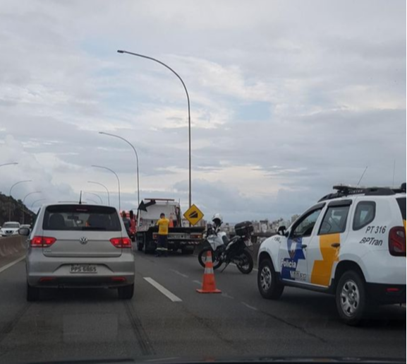 Um motociclista ficou ferido após cair com a moto em cima da Terceira Ponte, no sentido Vila Velha, na tarde desta segunda-feira (19). Segundo a Rodosol, o acidente aconteceu próximo ao vão central e uma das vias foi parcialmente interditada para o atendimento à vítima pelas equipes da concessionária. Um congestionamento se formou.