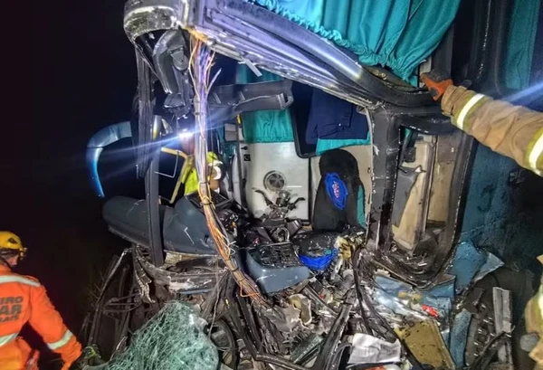 De acordo com o Corpo de Bombeiros de Minas Gerais, o ônibus transportava 49 passageiros. O motorista do coletivo, de 32 anos, ficou preso às ferragens e não resistiu aos ferimentos.>
