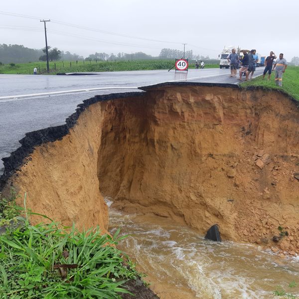 "Na sequência, será reconstruída a drenagem, recomposto o aterro da pista e pavimentação. As equipes atuarão ininterruptamente para restabelecer a operação normal da rodovia", finalizou.>